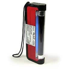 This Model UVL-4 Mini UV lamp uses a 4-watt fluorescent tube with a wavelength of 365nm. It is an excellent lamp for office or quick field inspection. Lamp is lightweight and small enough to fit into a pocket. A nylon strap is attached for easy handling. Operates on four AA batteries. Replacement 6" BLB type LW tube bulb is optionally available.