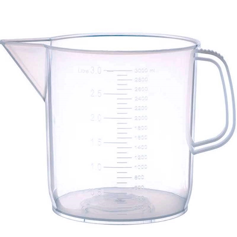 Short Form Plastic Graduated Beaker with Handle, 3000mL, Pk/6