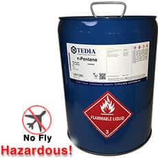 Caution: n-Pentane is flammable and a dangerous fire risk. Ships only to destinations within the 48 contiguous US states using Standard Ground. HazMat fee applies to this twenty liter size. Adult signature required upon delivery. Shipping to a commercial address suggested.